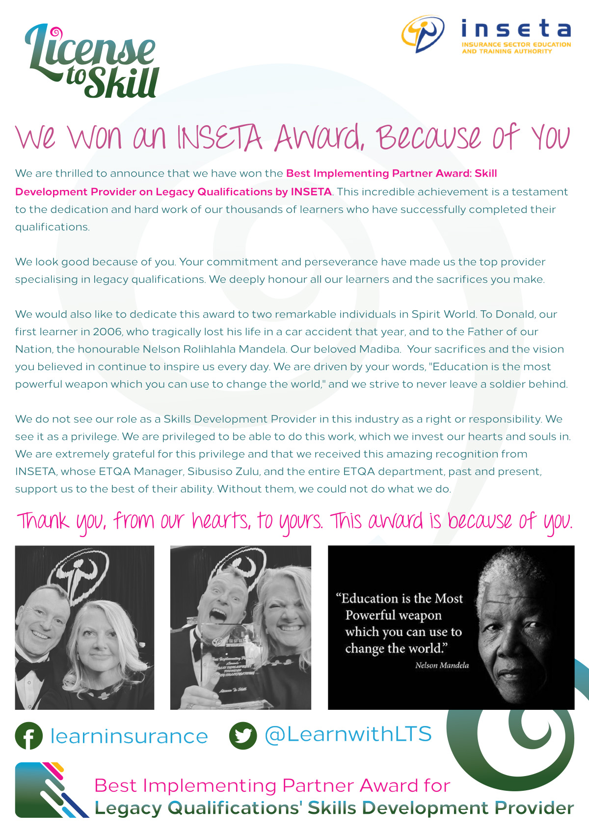 INSETA has extended the last date of enrolment for all INSETA (Legacy) Qualifications with another 12 months. Â This means that you can enrol until June 2026 (previously 2025)